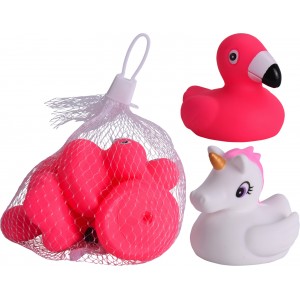 سێتەکە پێنج یاری گەرماوە لاستیکییەکانی تێدایە کە بە شێوەیەکی سەرسوڕهێنەر لەناو ئاوەکەدا دەسوڕێنەوە. قەبارە: 5.5 سم..