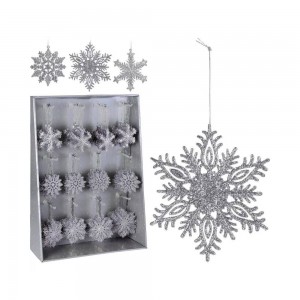دیکۆرێکی جوانی هەڵواسراو بە درێژایی 10 سم لەگەڵ دەنکە بەفری زیوینی هاوتا، تەواو گونجاوە بۆ ڕازاندنەوەی درەختی کریسمسەکەت یان بۆ ڕازاندنەوەی تاجە گوڵینە..