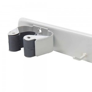 رەفی ئامێرەکانی باخچە 2 گیرە و 1 قەڵغان لەسەر شریتی کانزا لەوانەش پیچ و پڵاگ ڕەنگی سپی بەشێکی گیرە بە ڕەنگی رساسی لاستیکیی پلاستیکی گەرمی..