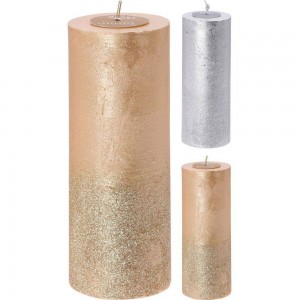 ستوونی مۆم بە مۆمی گلیتەر قەبارە: تیرە 7 * بەرزی 17 سم کێش: 590 گرام 2 ڕەنگی جۆراوجۆر..