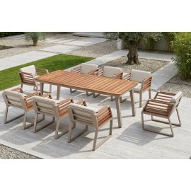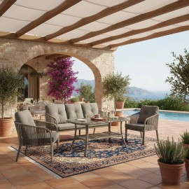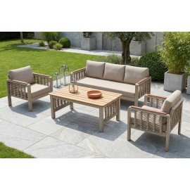 مۆدێل: سێتی دانیشتنی باخچەی ئەلەمنیۆمی چنار (Çınar) - 3+1+1 لەگەڵ مێزی قاوەی دار.