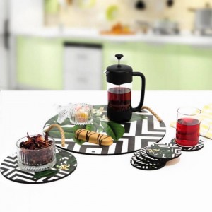 سێتی چوار کۆستەری خواردنەوە گونجاوە بۆ ئاهەنگەکان دەپارێزێت سەر وۆرکتۆپ و ڕووکارەکان لە خواردنەوە گەرم و ساردەکان. بە هەڵبژاردنی سێ ڕەنگ بەردەستە؛ زێڕ و ڕەش و زیو بە ڕووی بریقەدار.قەبارەکانی: تیرەی 10 سم..