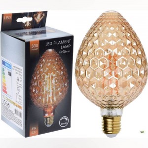 ئەم لامپە ناوازەیەی فیلامێنتی LED تاچێکی ڤینتاژی ڕەسەن دەدات بە هەر ژوورێک. لامپەکە فیتینگێکی گەورەی هەیە (E27) و هێزی 4 وات و توانای ڕووناکی 300 لومێن. شووشەکە ڕەنگی کەهەبی پێکهاتەیەکی تایبەتی هەیە کە وا دەکات ڕووناکی بە شێوەیەکی زۆر کەشوهەوا بدرەوشێتەوە بۆ ژوورەکە. ڕووناکییەکەی بە شێوەیەکی خۆش سپی گەرمە (1800 کێلڤین) و دەتوانرێت بەپێی ئارەزووی خۆ..