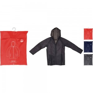 پۆشاکی باران بۆ گەورەساڵان، کۆی گشتی 190 پۆلیستەر + پۆلی یورتان ڕوپۆشی ناوەوە، 3000 ملم، لەگەڵ 2 گیرفان لەگەڵ فلاپ، لە 4 قەبارە: S ,M ,L ,Xl..